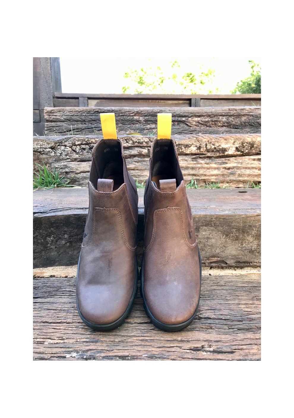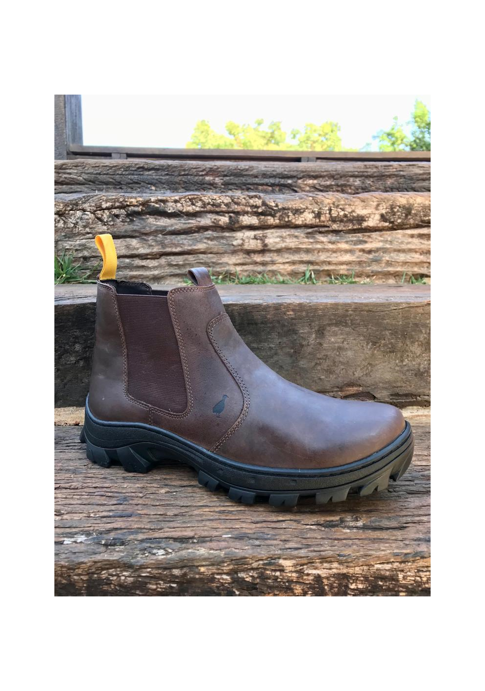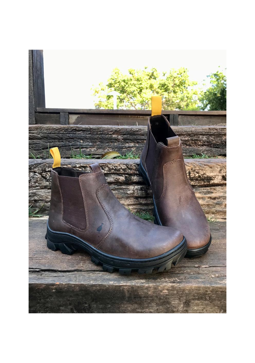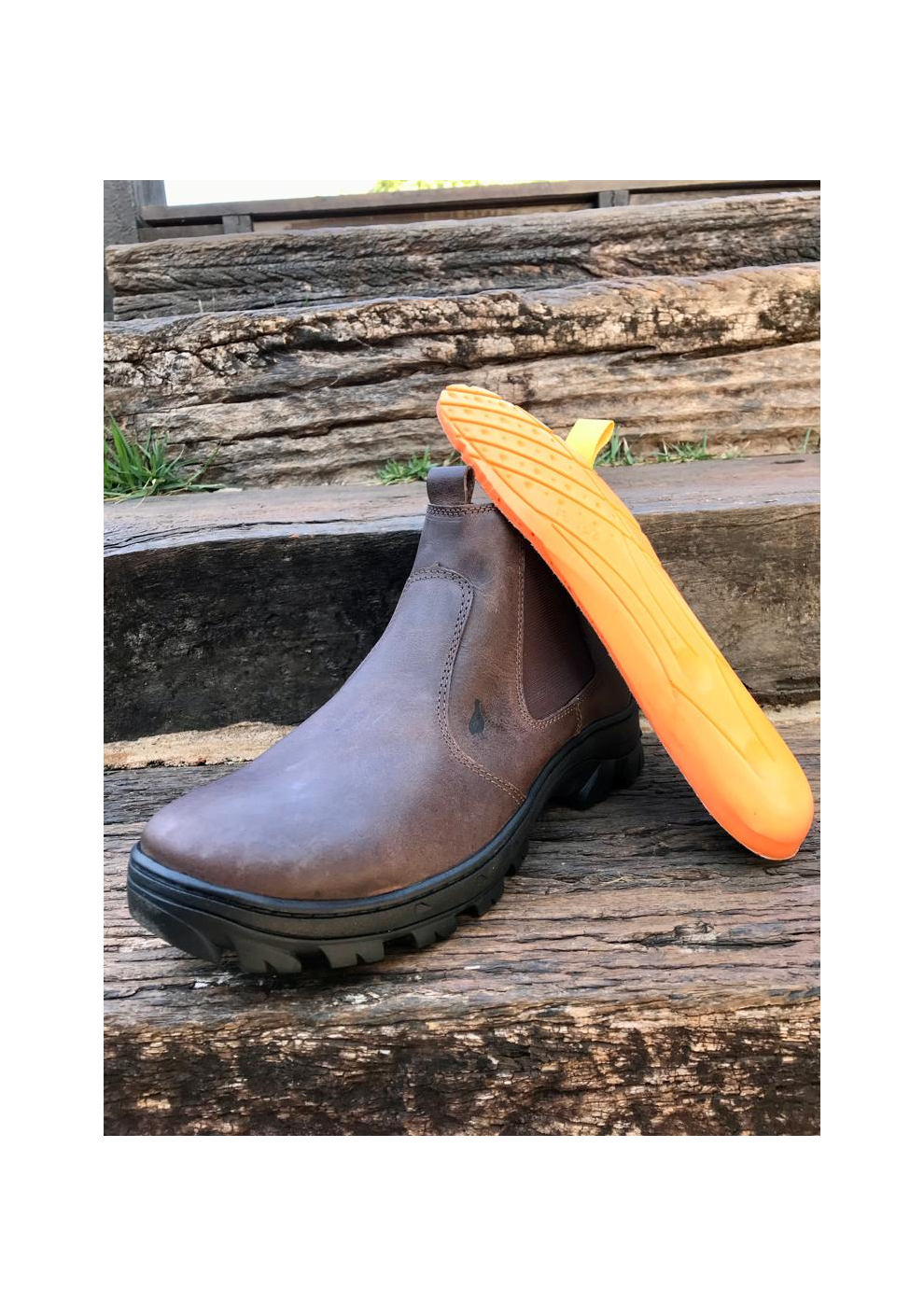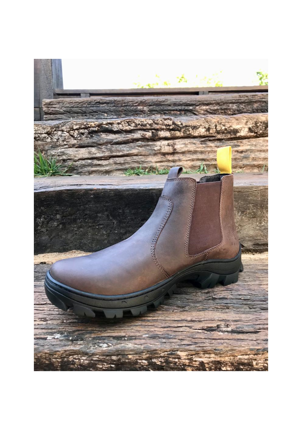 Botina em couro com costuras de alto padrão, solado flexível emborrachado, forro interno em couro, elásticos laterais flexíveis e palmilha anatômica oferecendo conforto ao caminhar.