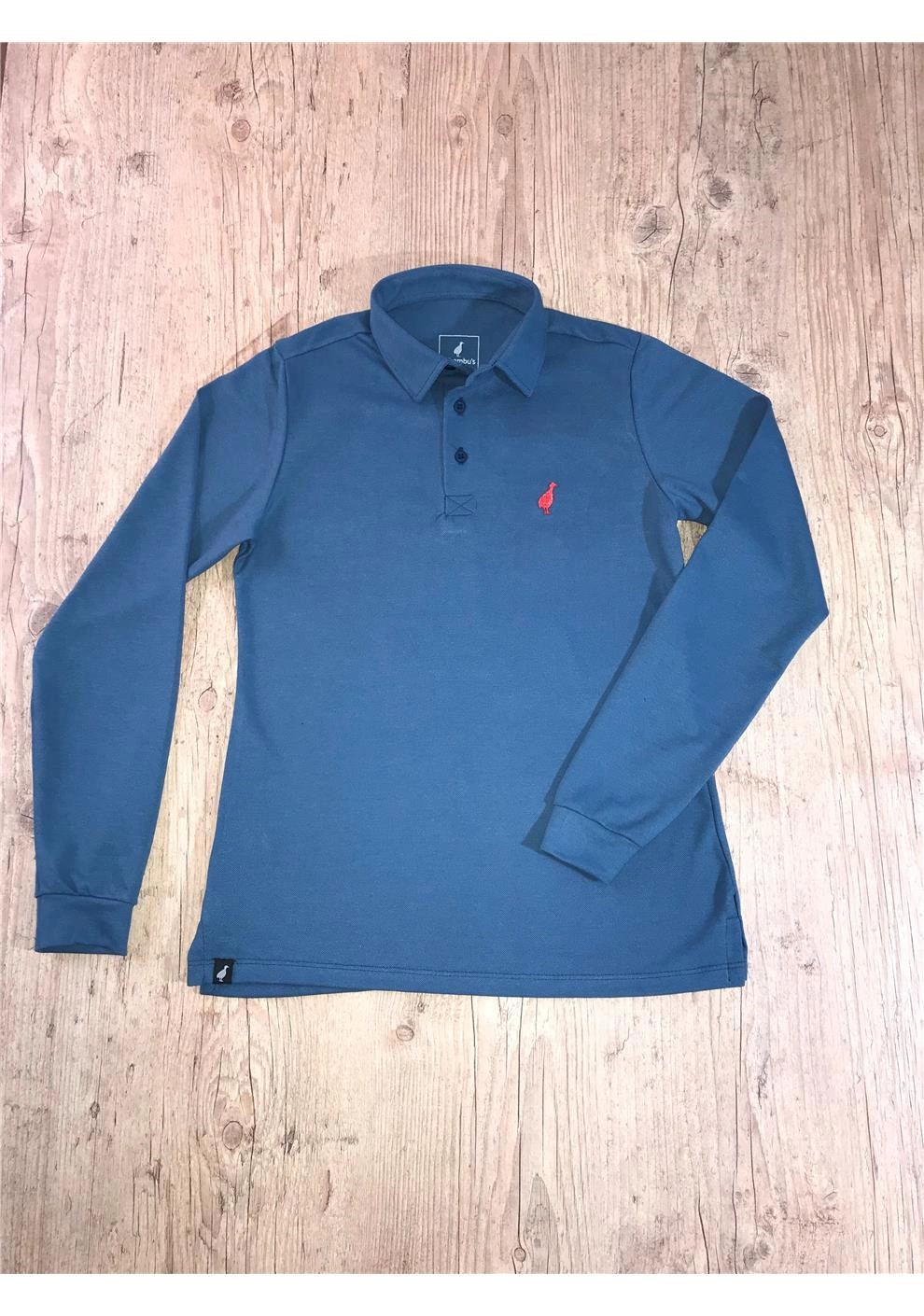 CAMISA GOLA POLO EM MALHA PIQUET PA (50% ALGODÃO / 50% POLIÉSTER), MANGA LONGA, GOLA SOCIAL, MANGA PUNHO E ABERTURA NAS LATERAIS. PÉ DE GOLA E PATI INTERNO DA MESMA COR.