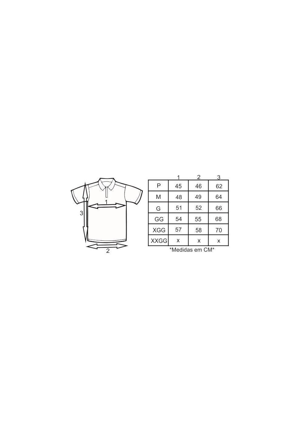CAMISA GOLA POLO EM MALHA PIQUET PA (50% ALGODÃO / 50% POLIÉSTER), MANGA CURTA, GOLA SOCIAL, MANGA PUNHO E ABERTURA NAS LATERAIS. PÉ DE GOLA E PATI INTERNO COLORIDOS.
