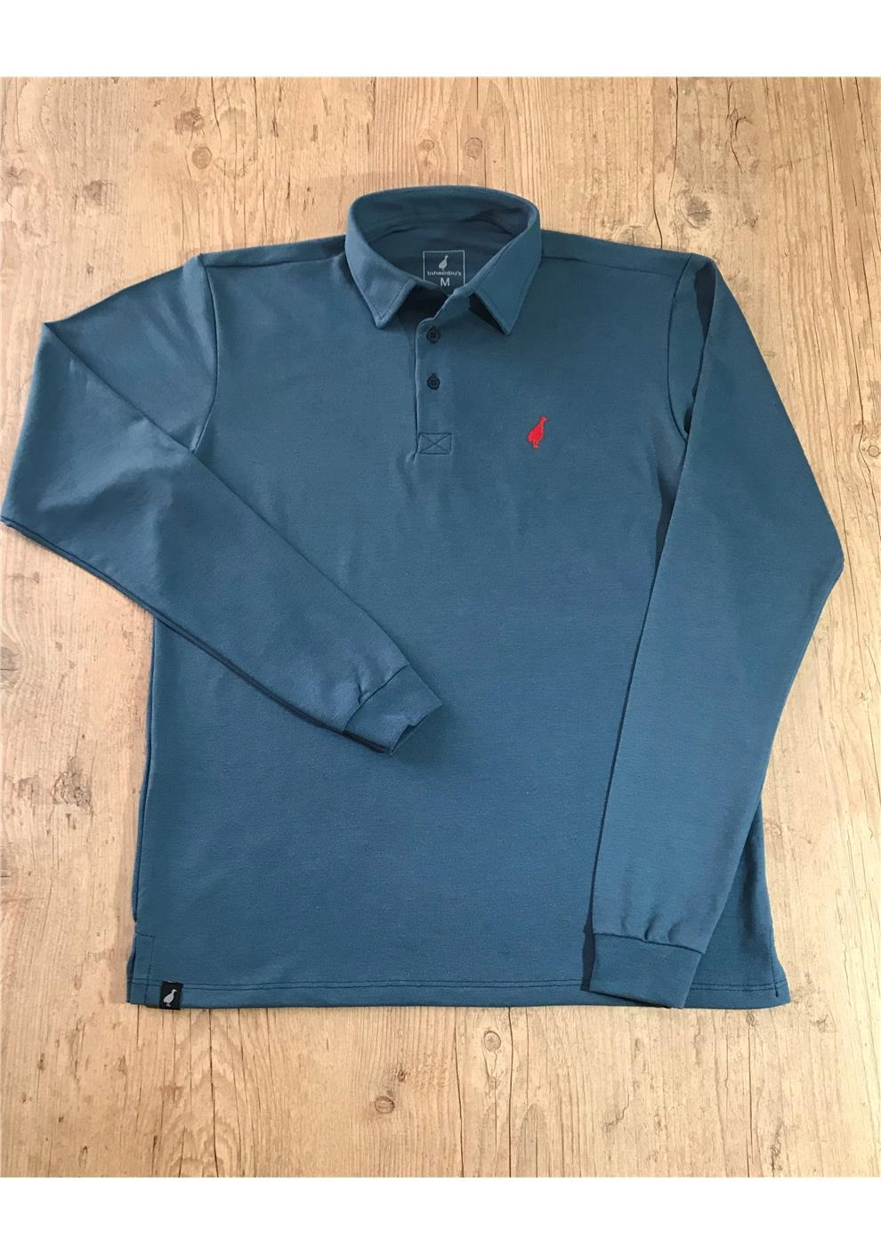 CAMISA GOLA POLO EM MALHA PIQUET PA (50% ALGODÃO / 50% POLIÉSTER), MANGA LONGA, GOLA SOCIAL, MANGA PUNHO E ABERTURA NAS LATERAIS. PÉ DE GOLA E PATI INTERNO DA MESMA COR.