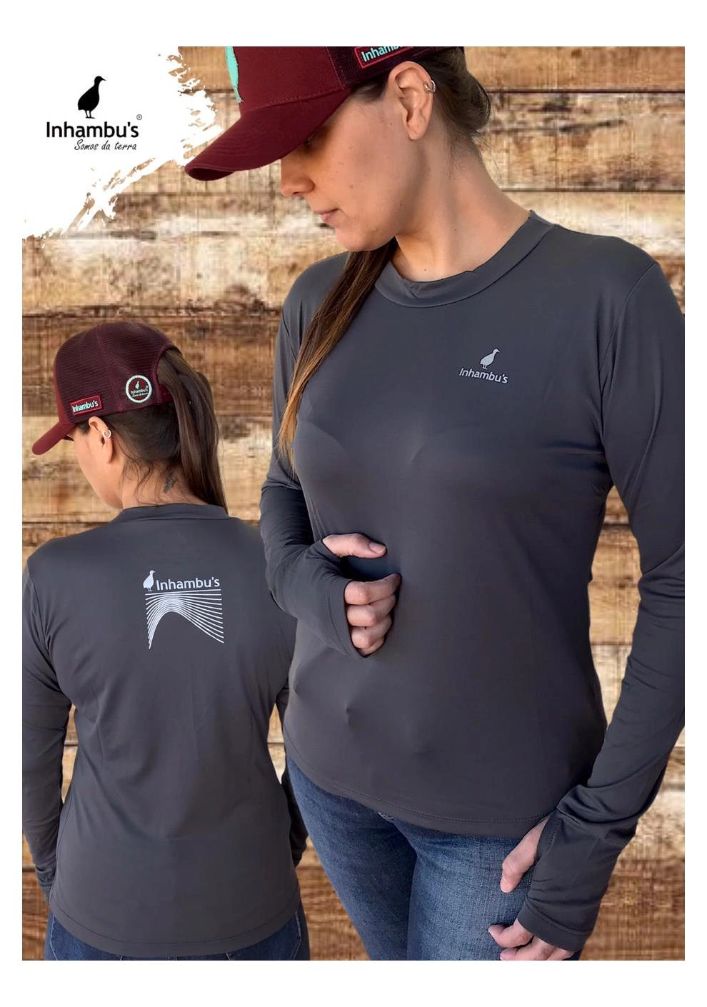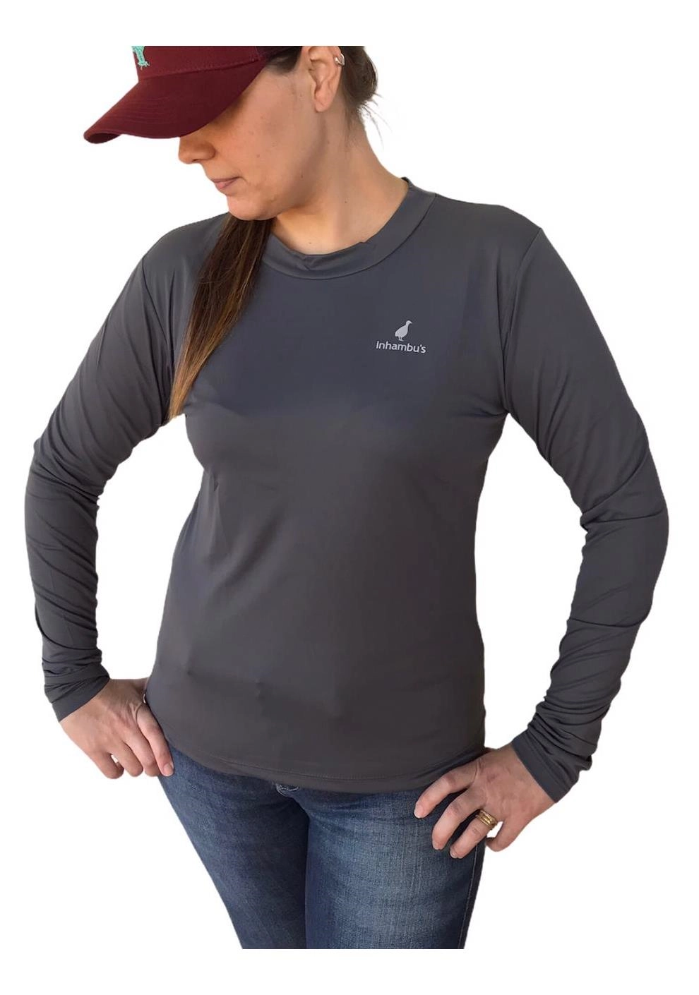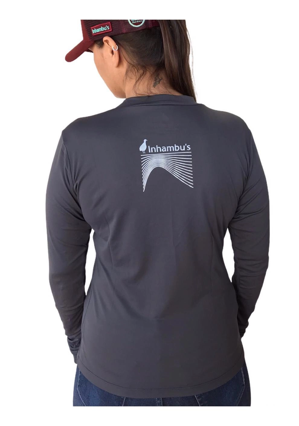 Camiseta Inhambu's Feminina c/ PROTETOR DE MÃO UV50 - Cinza - INHAMBU'S