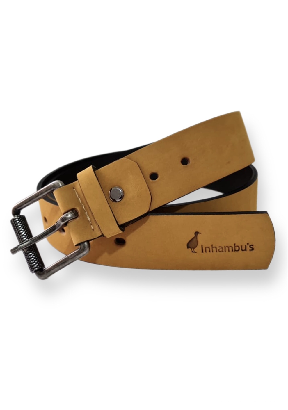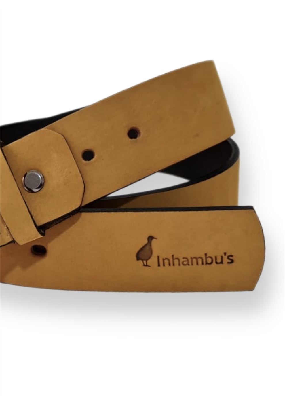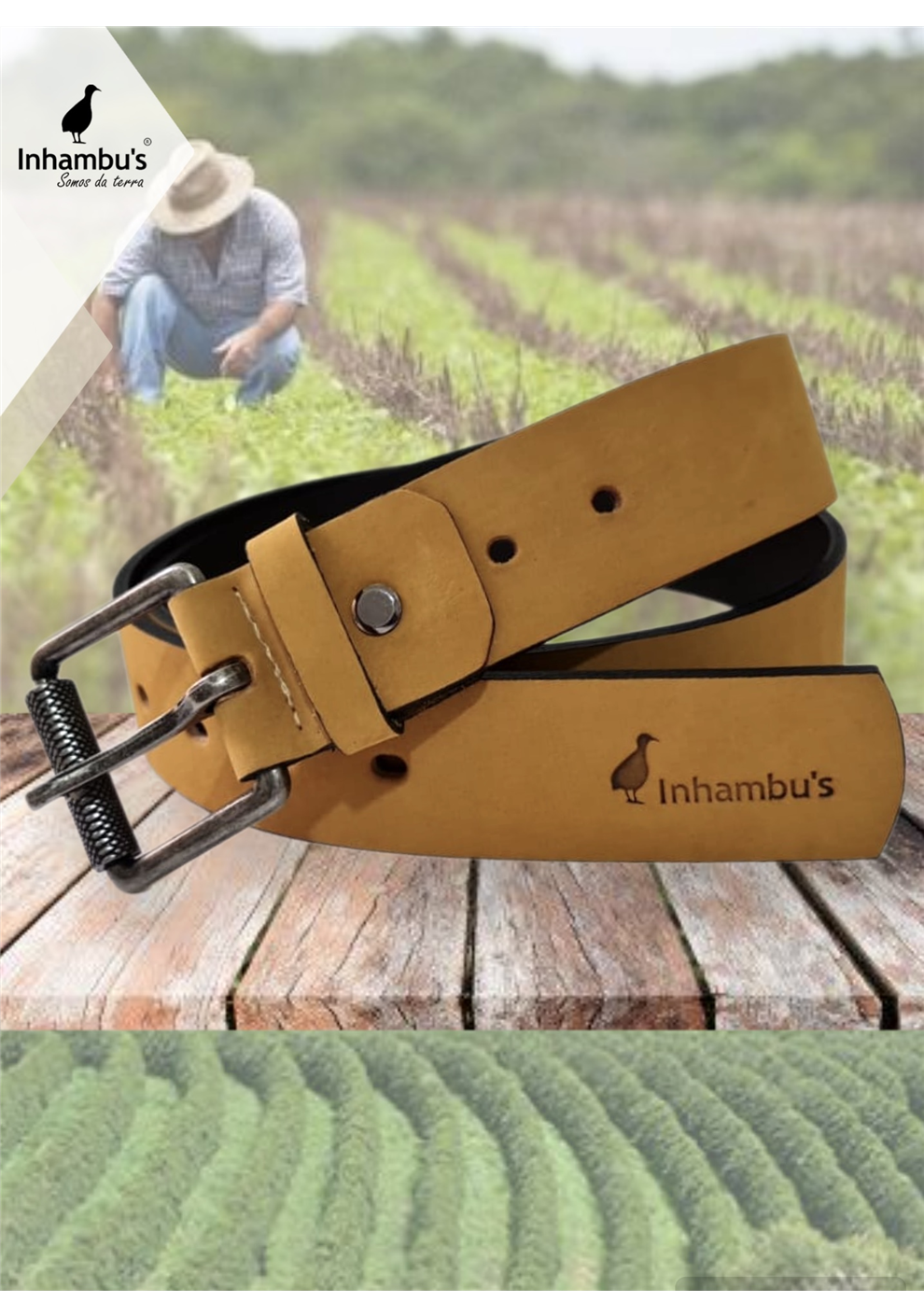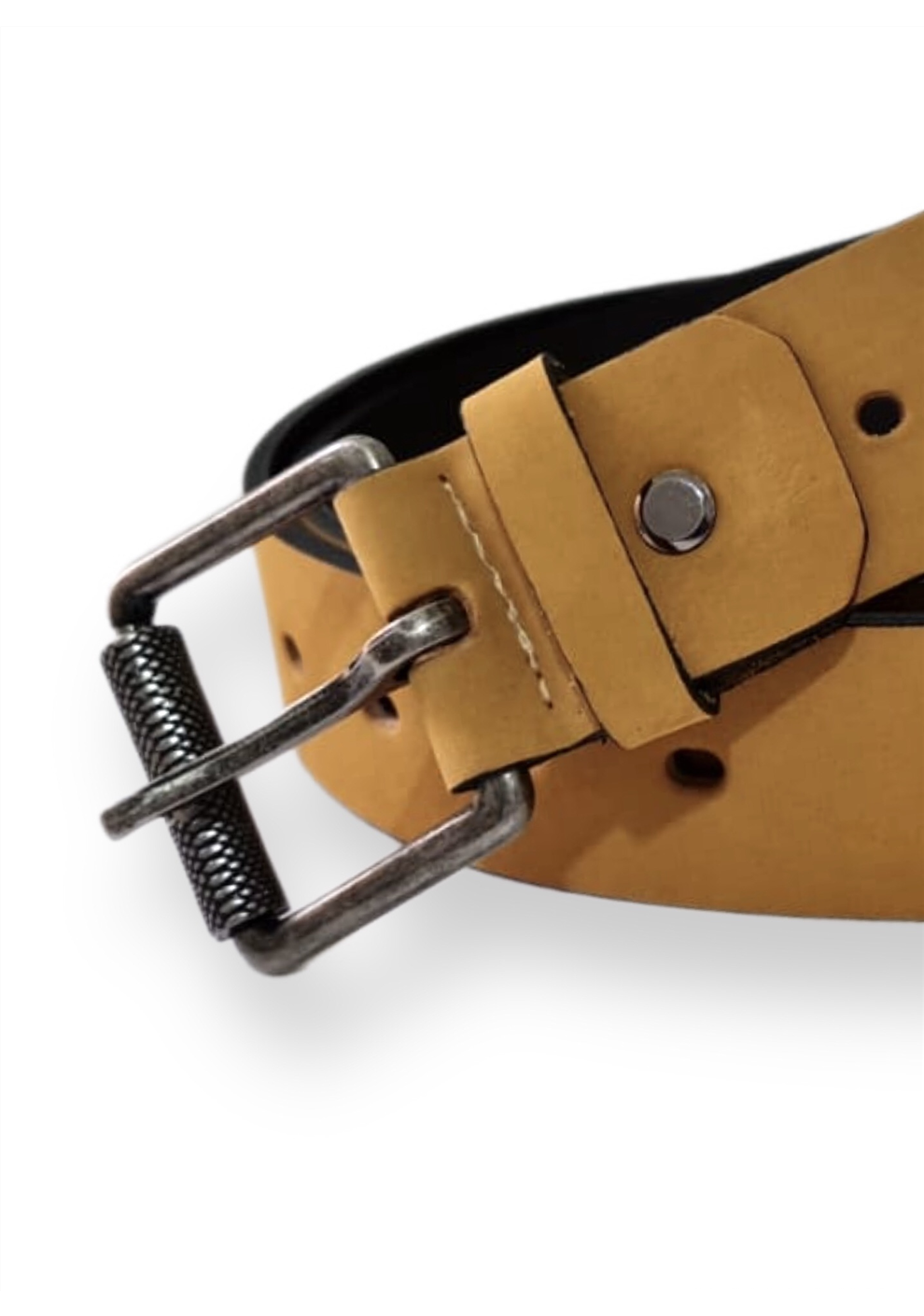 CINTO EM COURO LEGÍTIMO NA COR MILHO, COM 3 OPÇÕES DE REGULAGEM DE TAMANHO NA FIVELA, LARGURA 4CM.
