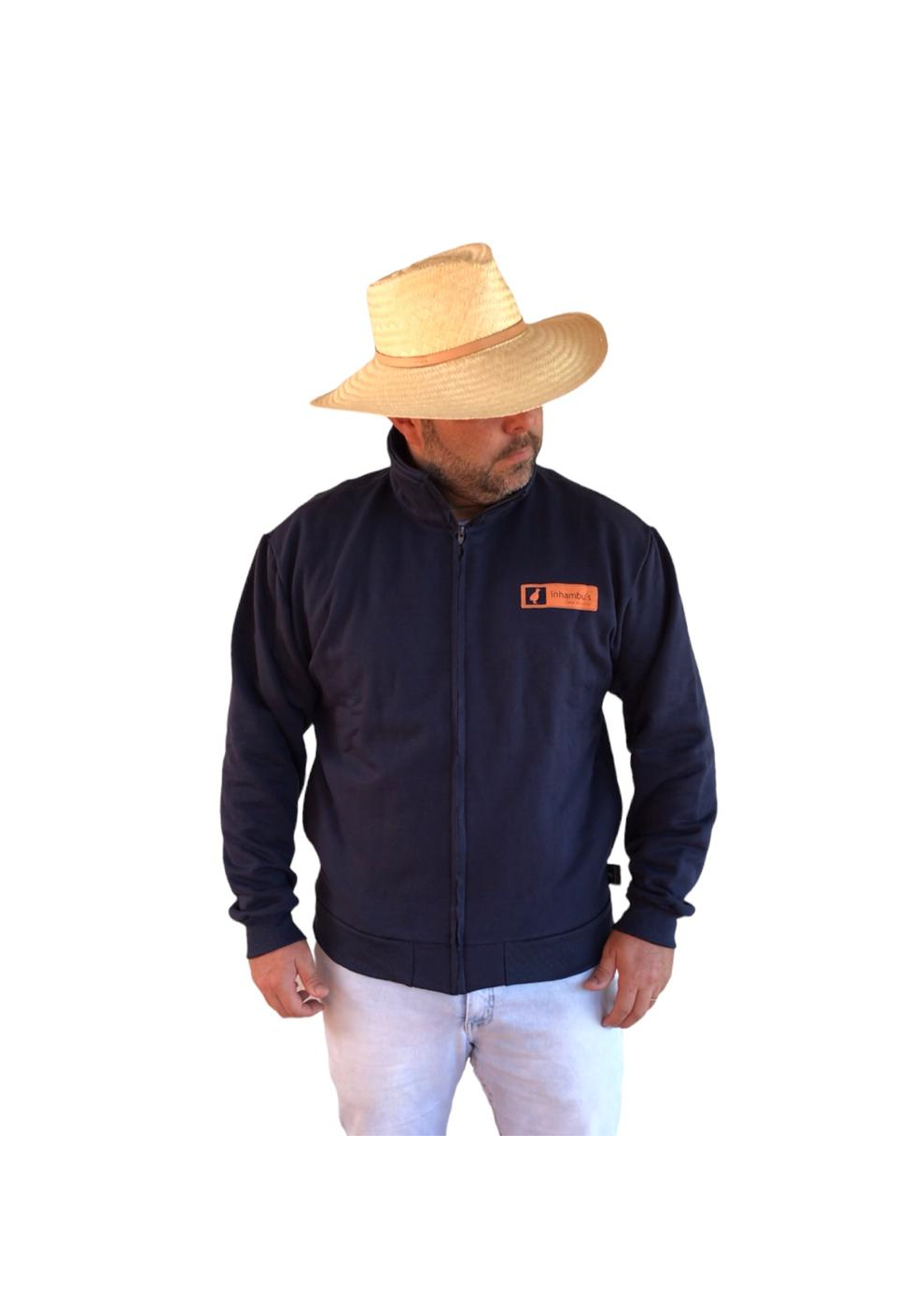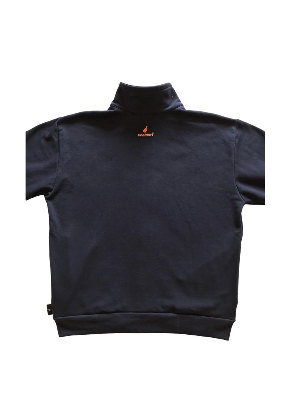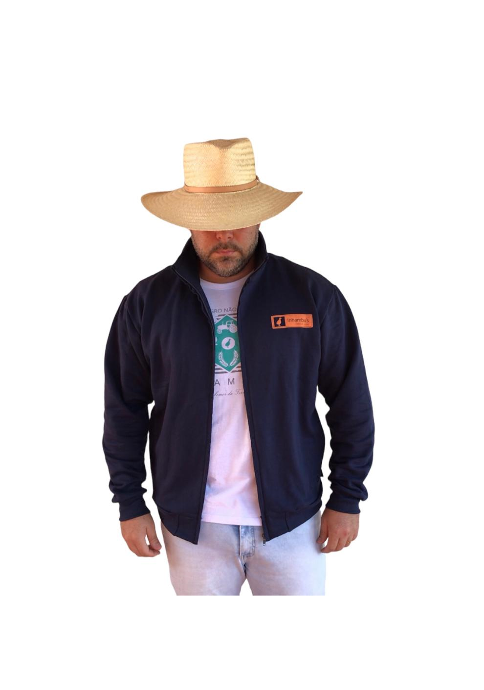 MOLETOM COM ZIPER SEM CAPUZ, GOLA ALTA, 50% ALGODÃO E 50% POLIESTER, BOLSO FRONTAL.