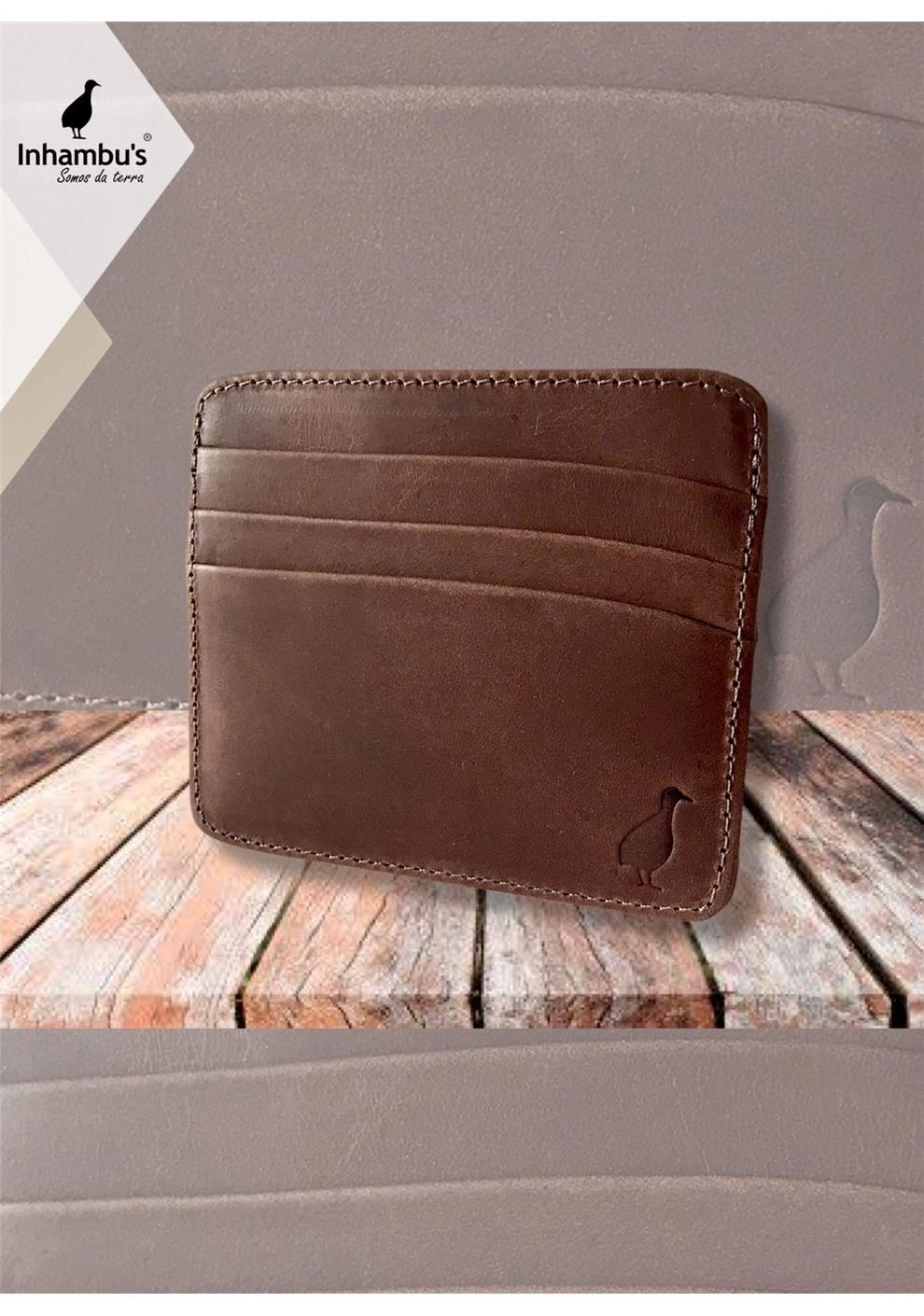 PORTA CARTÃO INHAMBU'S EM COURO LEGÍTIMO, TAMANHO 8,5X10CM. TOTAL DE 6 DIVISÓRIAS P/ CARTÕES FRENTE E VERSO, PORTA DOCUMENTO SANDUÍCHE.