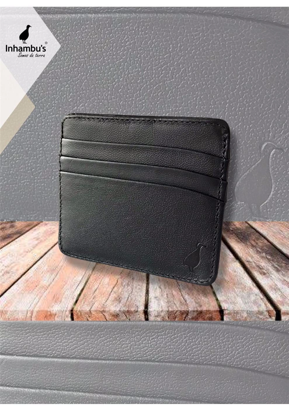 PORTA CARTÃO INHAMBU'S EM COURO LEGÍTIMO, TAMANHO 8,5X10CM. TOTAL DE 6 DIVISÓRIAS P/ CARTÕES FRENTE E VERSO, PORTA DOCUMENTO SANDUÍCHE.